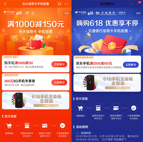 京东618手机品类日火爆来袭 买手机用信用卡支付至高减150元